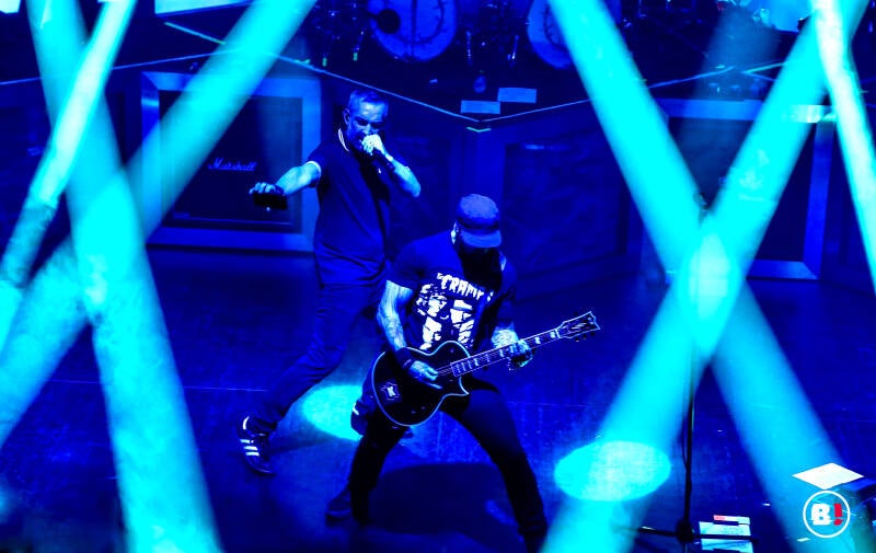 Les titres s'enchainent sans relâche. Certes, Mouss est le leader charismatique mais on ne peut décemment pas renier que ce sont les cinq membres qui rendent Mass Hysteria si particulier : Yann Heurtaux et Fred Duquesne à la guitare, Jamie Ryan à la basse et Raphäel Mercier à la batterie, assurent leur mission de divertir ce public de connaisseurs avec la même intensité que notre chanteur sus-cité ; c'est un tout, c'est communicatif et à moins d'avoir pénétré la salle sous Lexomil ( quoique même là ...), cette décharge nous est délivrée par la formation au complet !