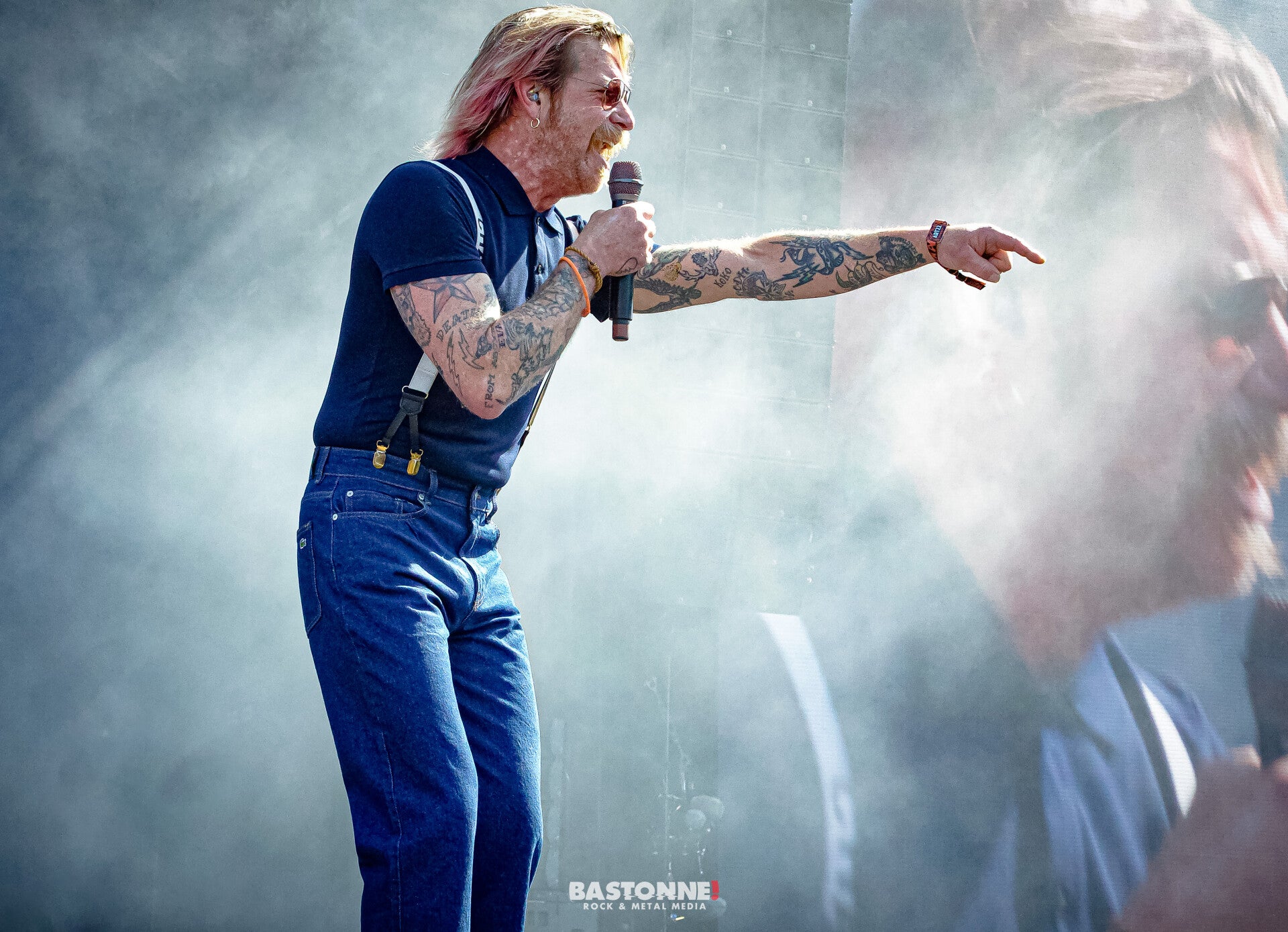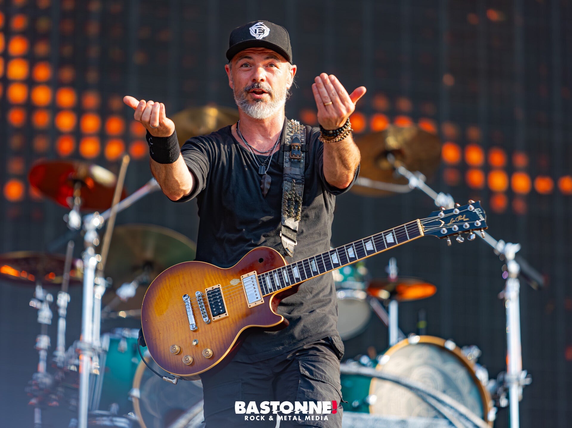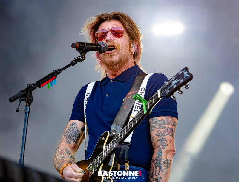 Le groupe débarque au son de “ We Are Family ” de Sister Sledge, donnant immédiatement le ton d’un show placé sous le signe de la bonne humeur et de la connexion avec le public. Jesse Hughes, tout sourire, a salué les festivaliers depuis l’avancée avant de descendre plusieurs fois au niveau des barrières, prenant ainsi le temps d’échanger avec les fans et de serrer des mains avec une sincérité rare sur ce type de grande scène. Un peu à la Chester !