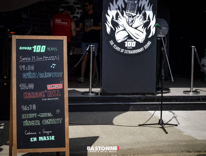 En repassant devant le stand ESP, je vois un attroupement de metalleux et si j'ai bien compris, c'est un concours de celui qui criera le plus fort ! "So Hellfest" quoi ! Des animations variées y sont prévues tout le week-end !