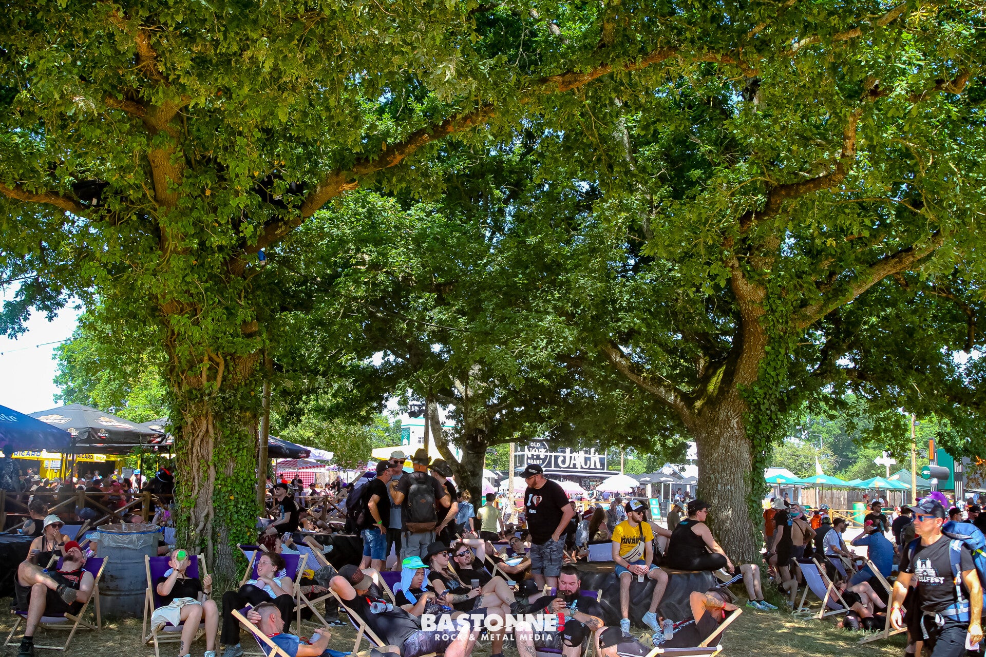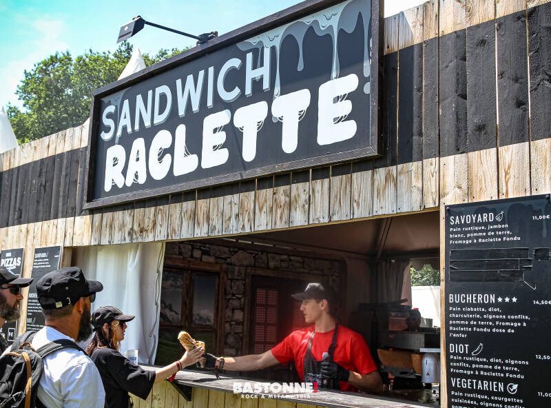 Les sets courts (30 minutes) mais intenses ont permis de goûter à un large éventail de styles... du stoner fuzzy, au death metal le plus sombre, faisant de cette première journée un terrain d’explorations sonores pour les curieux comme pour les plus fidèles. Les files d’attente pour les stands de bières et autres breuvages, aux alentours de la scène, se forment rapidement ; les festivaliers jonglant entre se désaltérer et ne rien manquer de la programmation en ce début d'après-midi ! Il est temps pour moi d'aller me restaurer un peu et c'est vers une salade fraîcheur que je jette mon dévolu. Accompagnée des hommes de Bastonne!, nous allons nous poser à l'ombre des tables du Metal Corner !