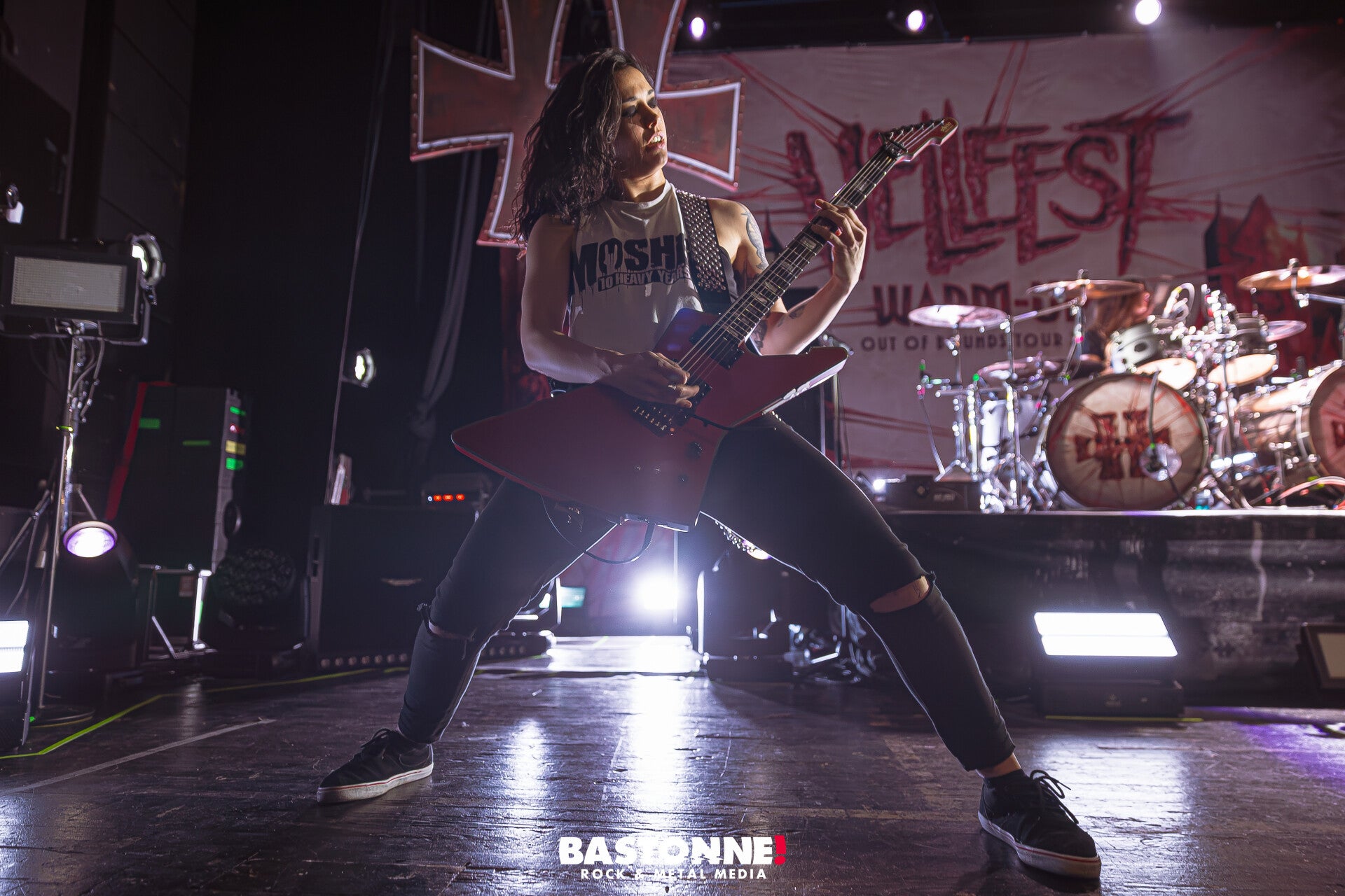 Pas d’intro longue ni de mise en scène superflue ; Nervosa entre sur scène et attaque immédiatement. Le son est sec, précis, agressif, exactement ce qu’on attend d’un thrash ! Le public bordelais ne demande pas son reste : headbangs synchronisés, premiers circle pits, ambiance déjà électrique. En ouverture, Nervosa n’a pas cherché à installer l’ambiance, ces filles de caractére l’ont imposée.