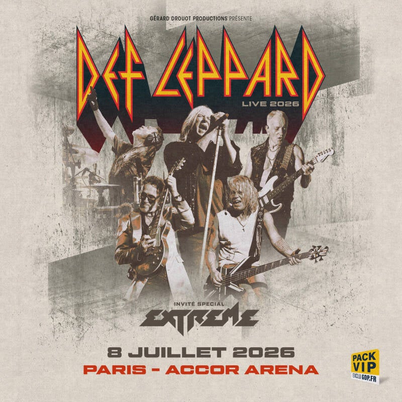 Cet événement marquera le premier concert parisien du groupe depuis près de 30 ans. La dernière prestation de Def Leppard dans la capitale remonte au 20 octobre 1996, tandis que son dernier passage à Bercy date de mars 1988. Si les fans français ont pu applaudir le groupe lors de ses apparitions au Hellfest (2013, 2019, 2023), l’accès limité du festival avait laissé sur leur faim de nombreux admirateurs. Cette date unique à l’Accor Arena promet donc d’être historique, d’autant plus que Def Leppard sera accompagné du groupe américain Extreme, invité spécial de la tournée.