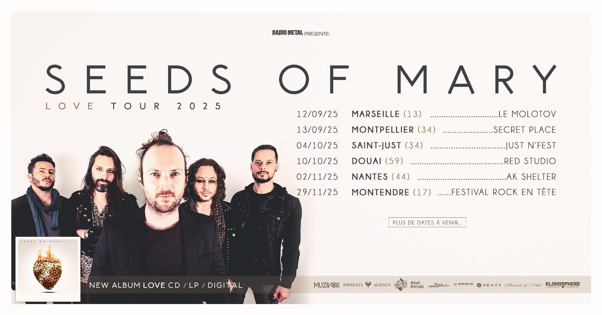 Seeds Of Mary clôturera bientôt sa saison live avec deux dernières dates, à Nantes (44) et au Festival Rock en Tête (17) — une belle occasion de (re)découvrir sur scène l’intensité et la sincérité d’un groupe en pleine maturité artistique.
