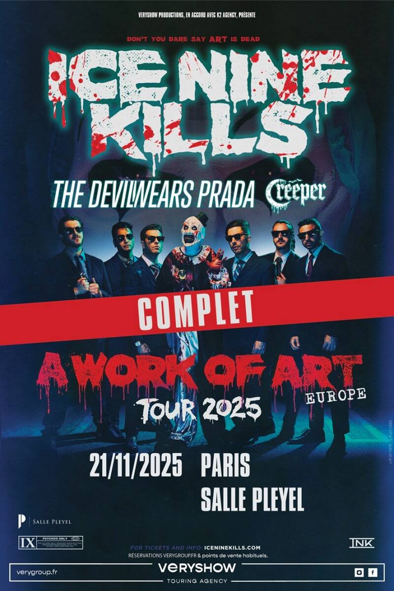 Avant de revenir en France pour la 3ᵉ édition du Heavy Week-end en juin 2026, ICE NINE KILLS s’offre une halte parisienne qui affiche déjà complet. Le rendez-vous est fixé au vendredi 21 novembre 2025, à La Salle Pleyel, pour un show qui s’annonce mémorable.